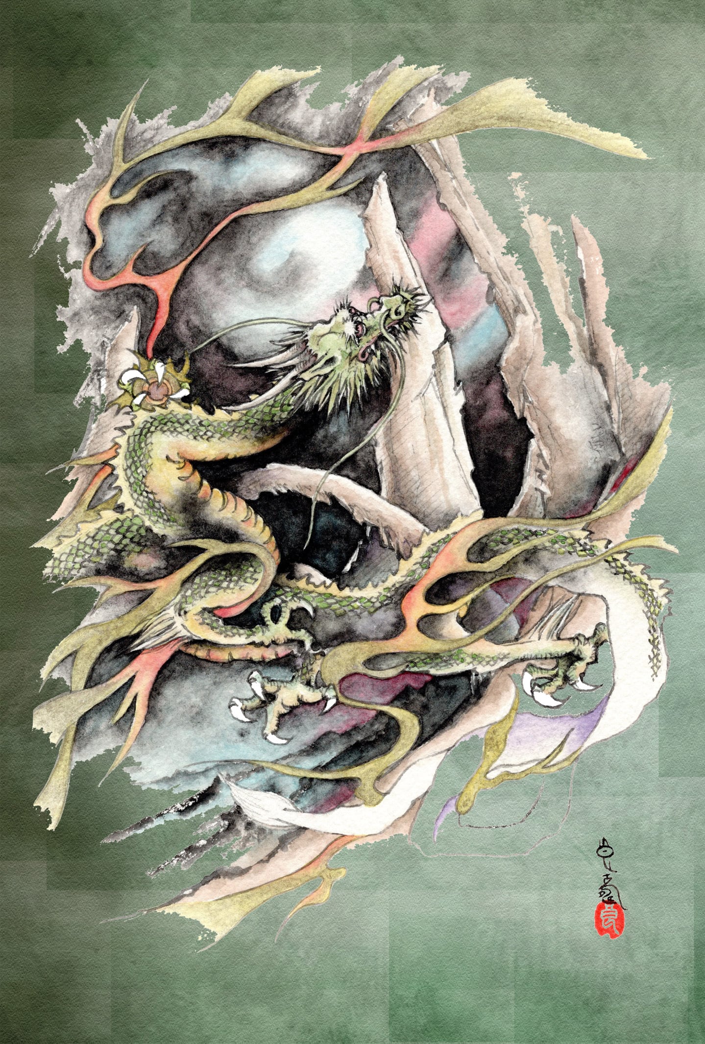 和風 龍 ドラゴン 盛運 縁起物 和風レトロ 日本画風 ポストカード インテリアアート ギフト