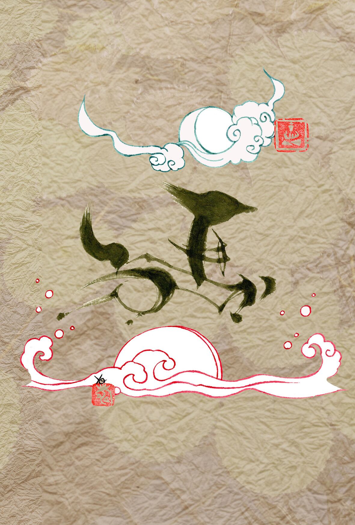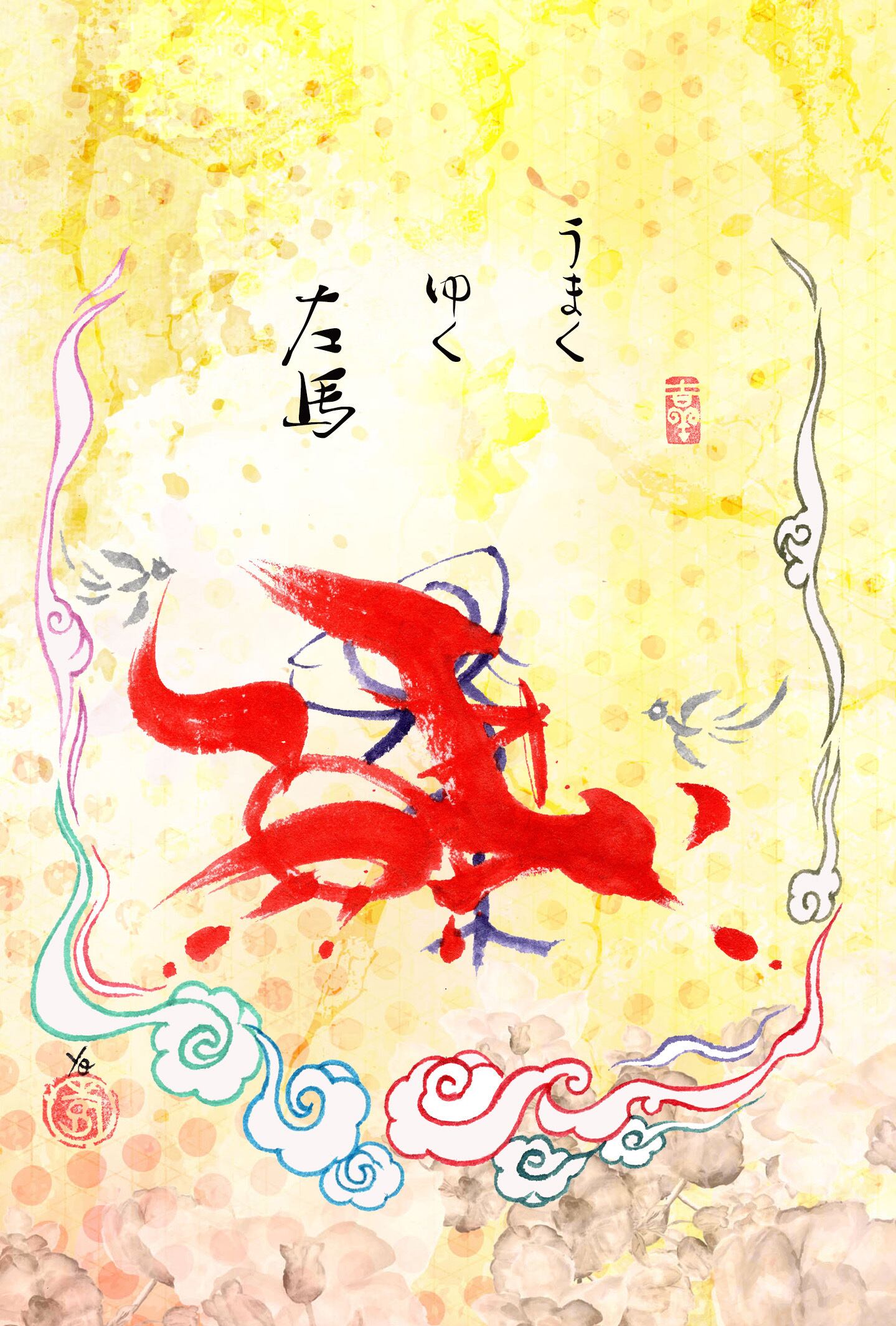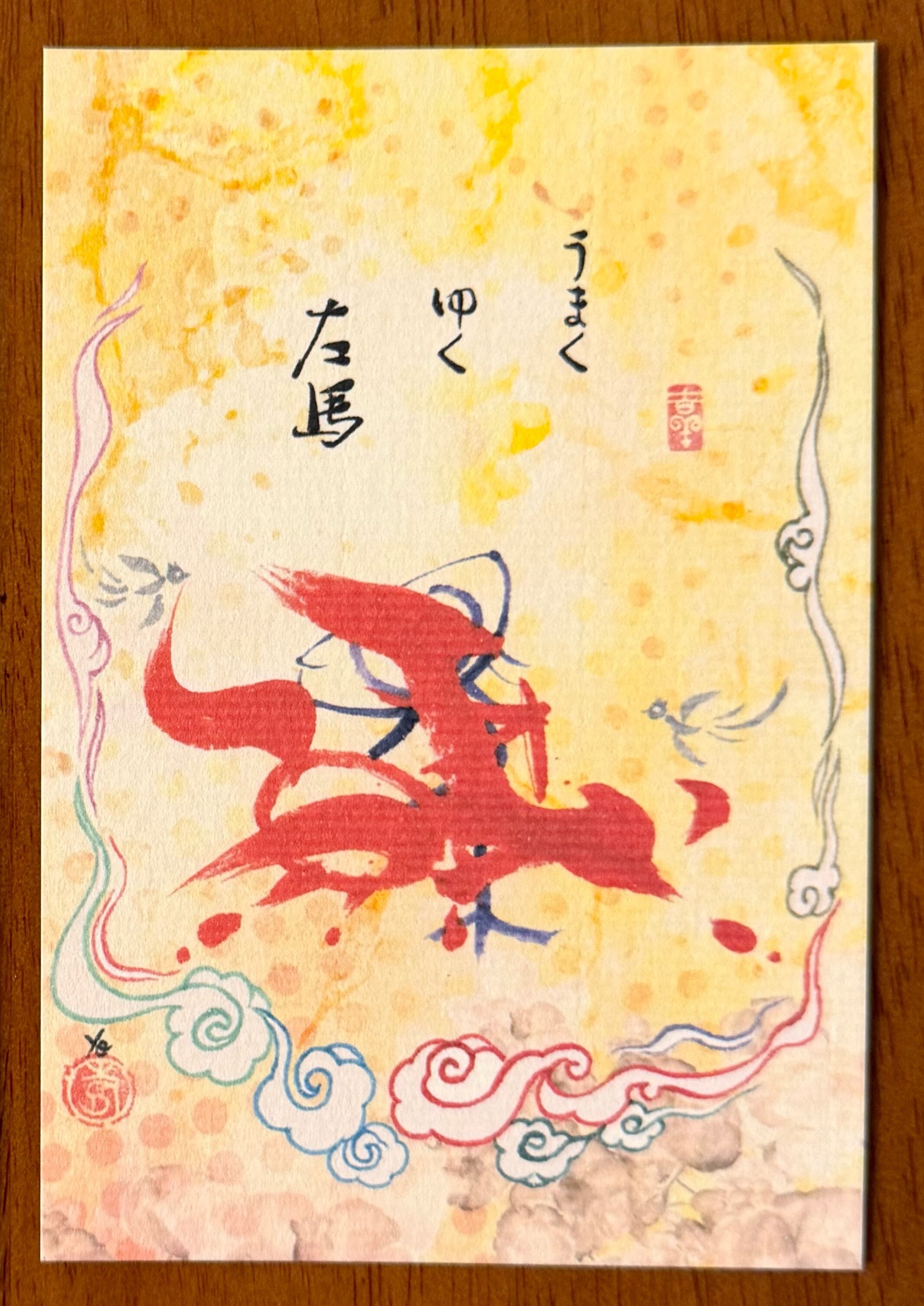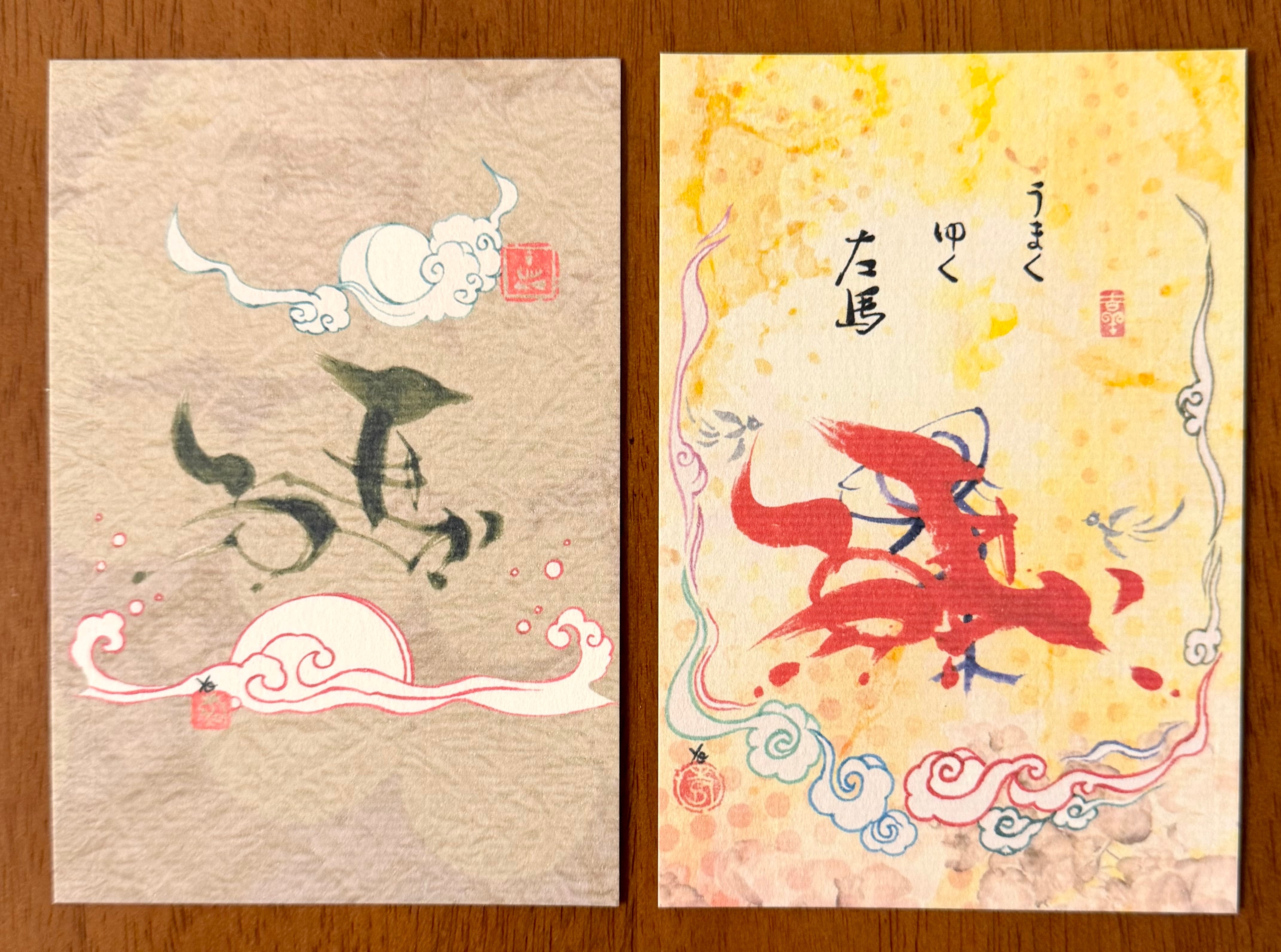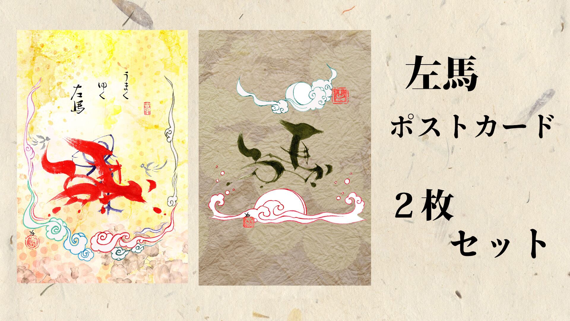 【うまくいくを願う 左馬の筆文字ポストカード- No.01|商売繁盛のお守り/2種セット】