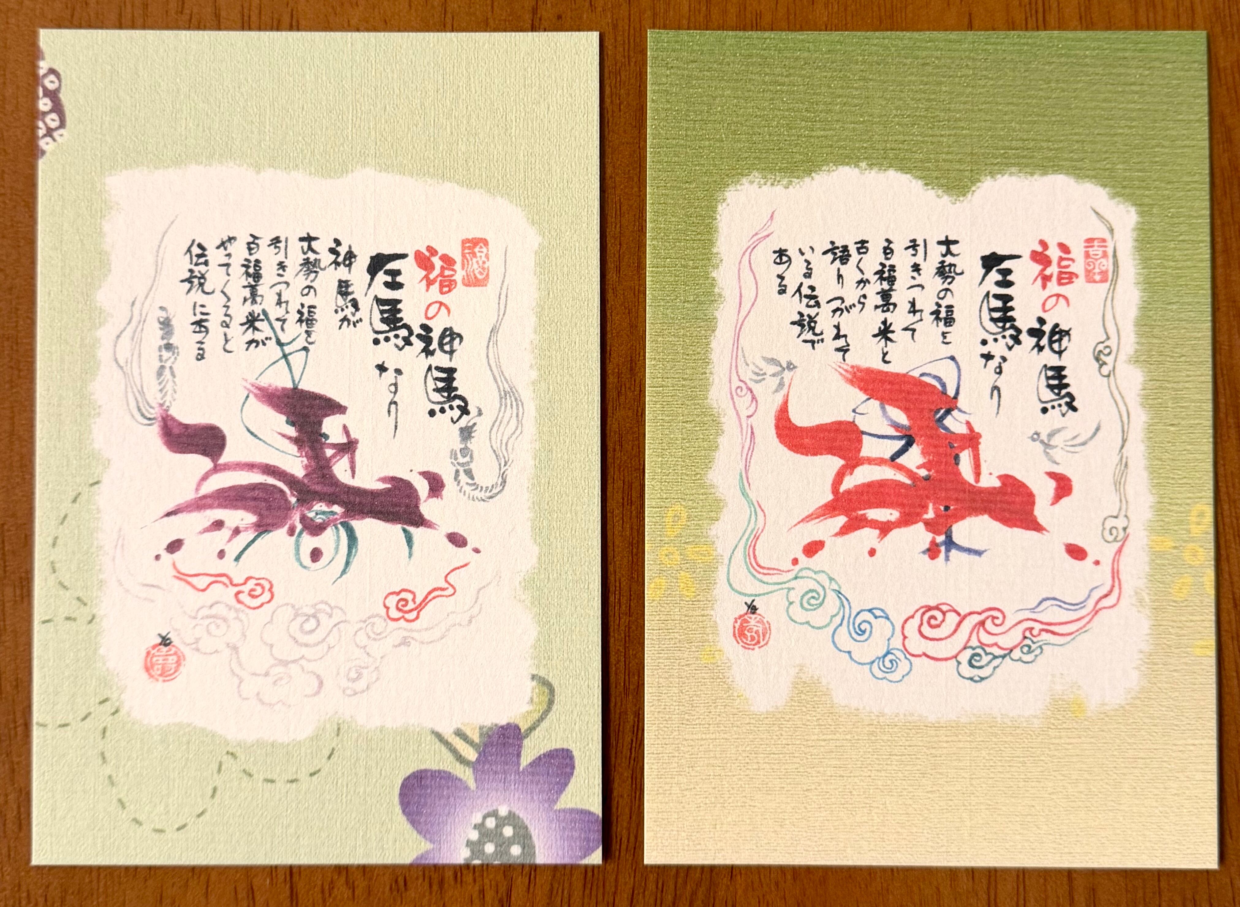 【うまくいくを願う 左馬の筆文字ポストカード- No.02|商売繁盛のお守り/2種セット】
