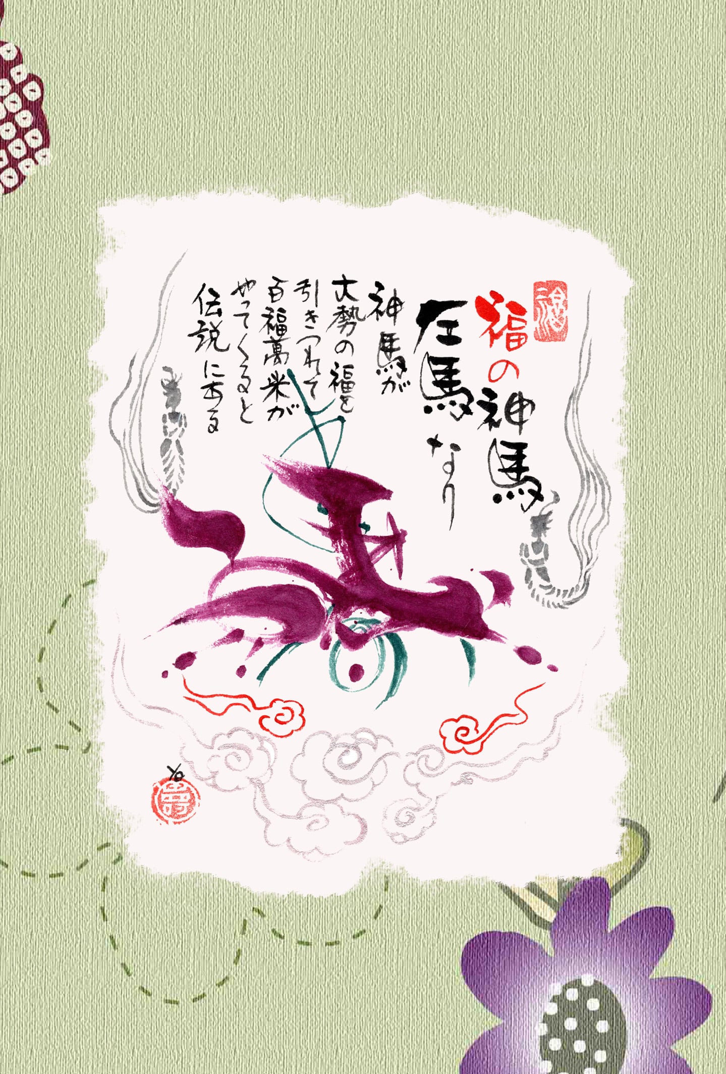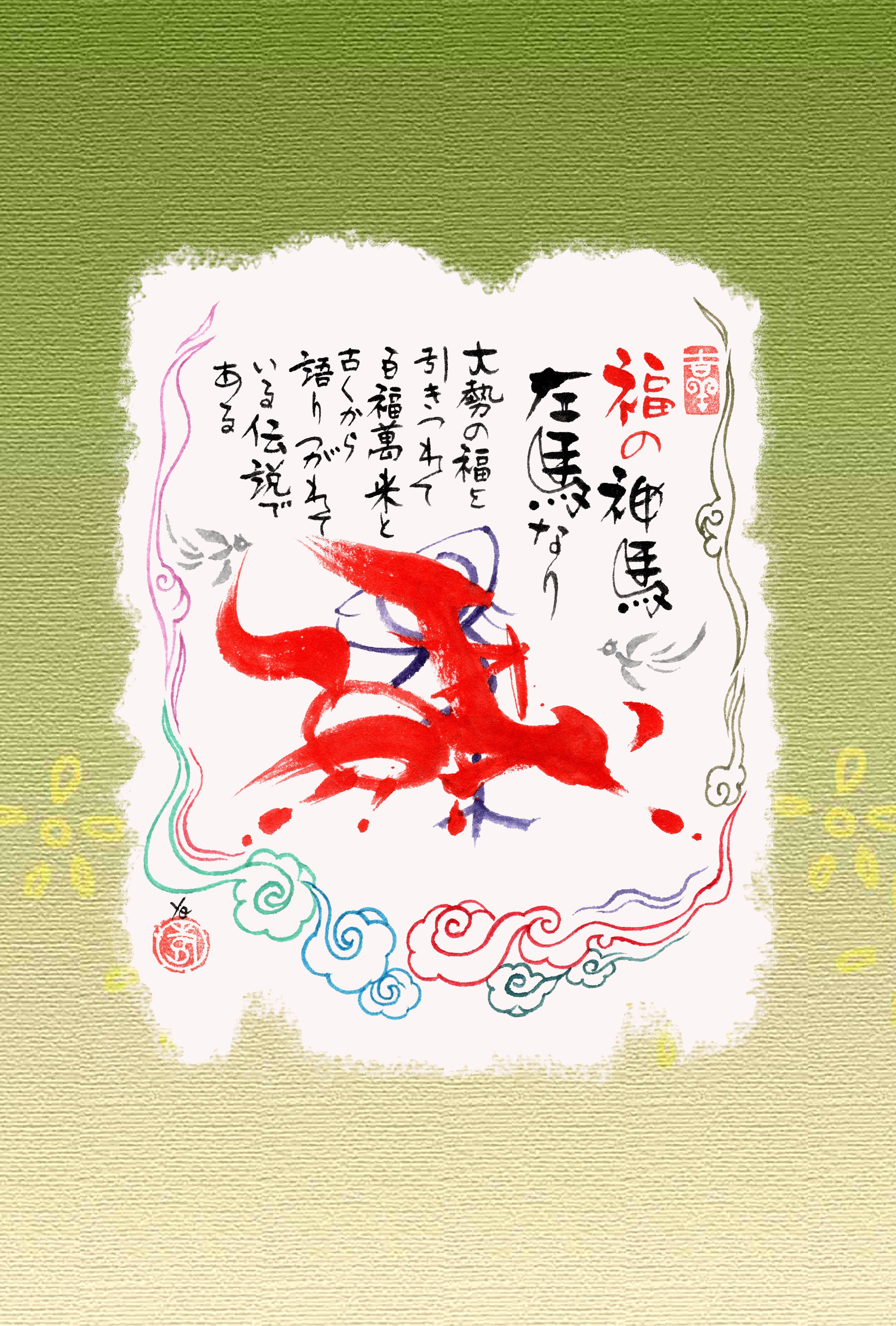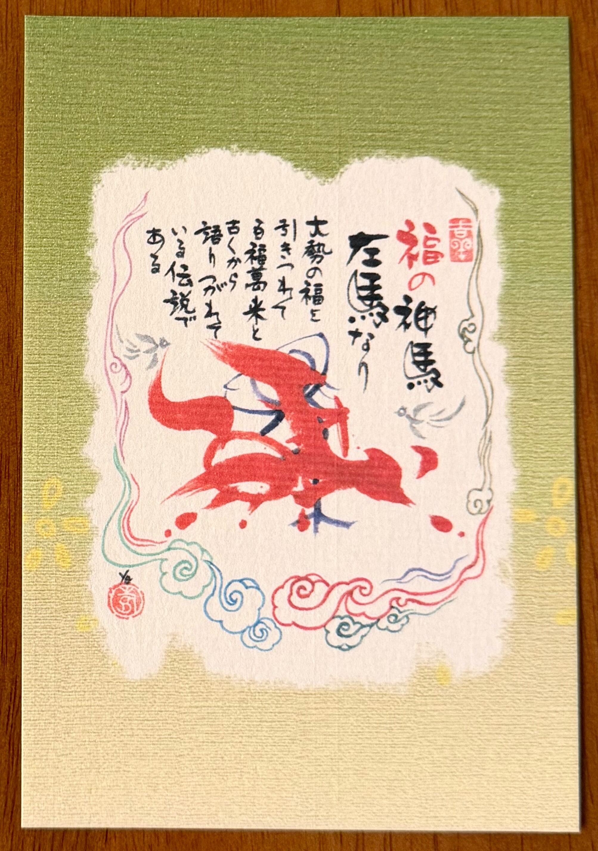 左馬 ひだりうま 筆文字 縁起物 和風 和風レトロ 福 招福 日本 ポストカード